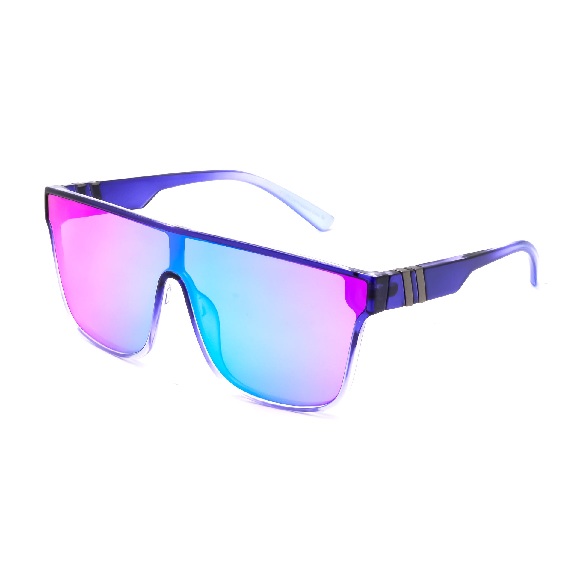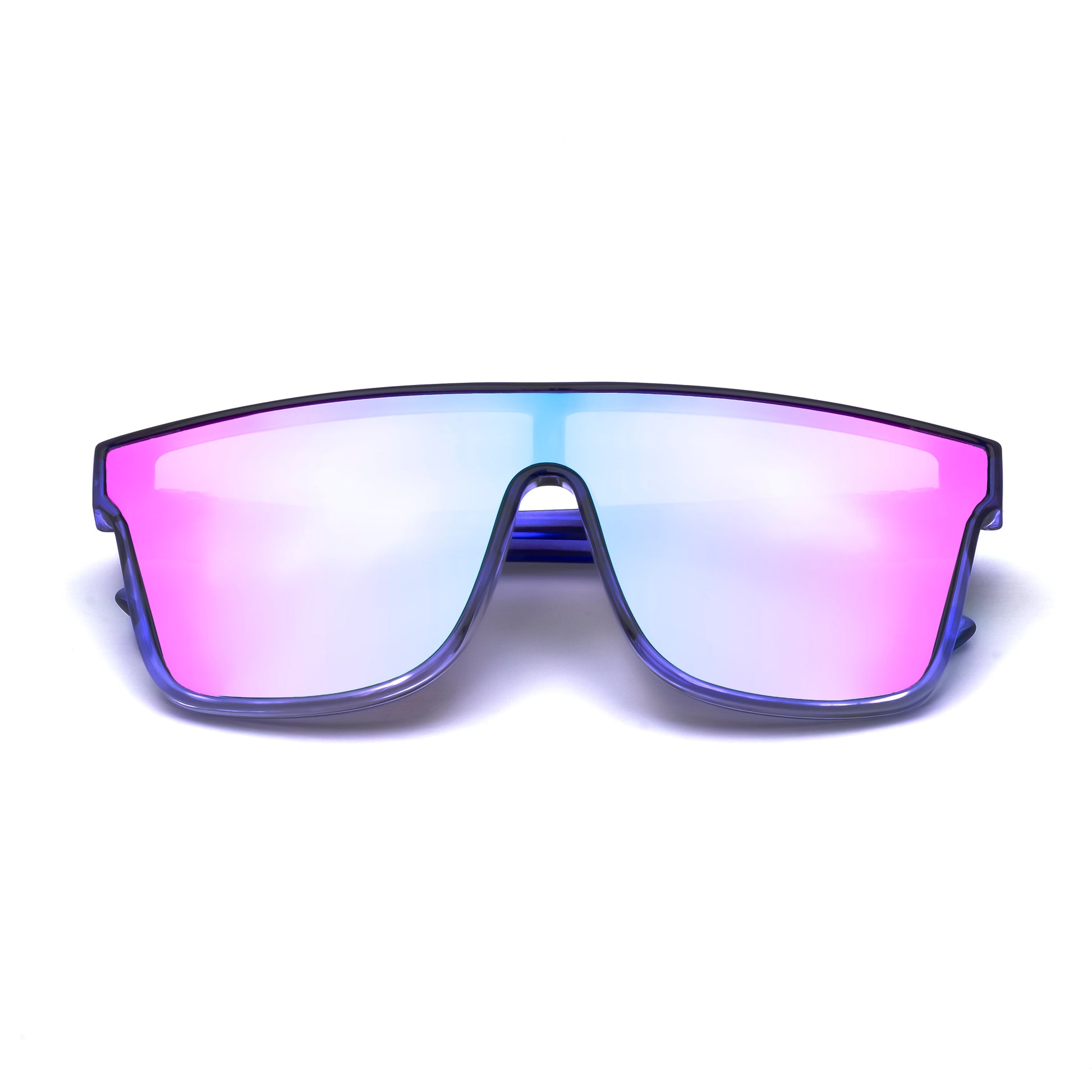 , our boldest pair of shield sunglasses, is a vibrant companion for those who crave color and coverage in their daily adventures. With a pink mirrored lens that shifts across a mesmerizing spectrum of tones, Kai is a true reflection of your personality—dynamic, bold, and effortlessly cool. The oversized frame is crafted with precision, ensuring a perfect fit for every face, while the subtle metallic accents add a sharp flourish. Whether you're cruising through the city streets or lounging by the beach, Kai is your go-to eyewear, ready to shield your eyes from the sun while making a statement that's as unique as you are.