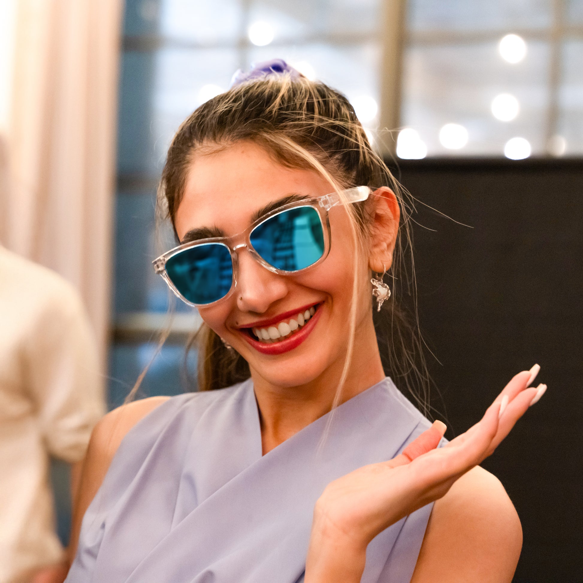 Tessa lives up to it's name by making an impression without saying a word. With a transparent frame that’s sleek and understated, it lets the vibrant blue, pink or smoke mirror lenses do the talking. Bold yet balanced, theyTessa keeps things light and comfortable, while the polarized lenses cut down on glare, giving you clear vision and all-around ease. Whether you’re out in the city or by the beach, Tessa is there, quietly elevating your look while ensuring you stay at ease.